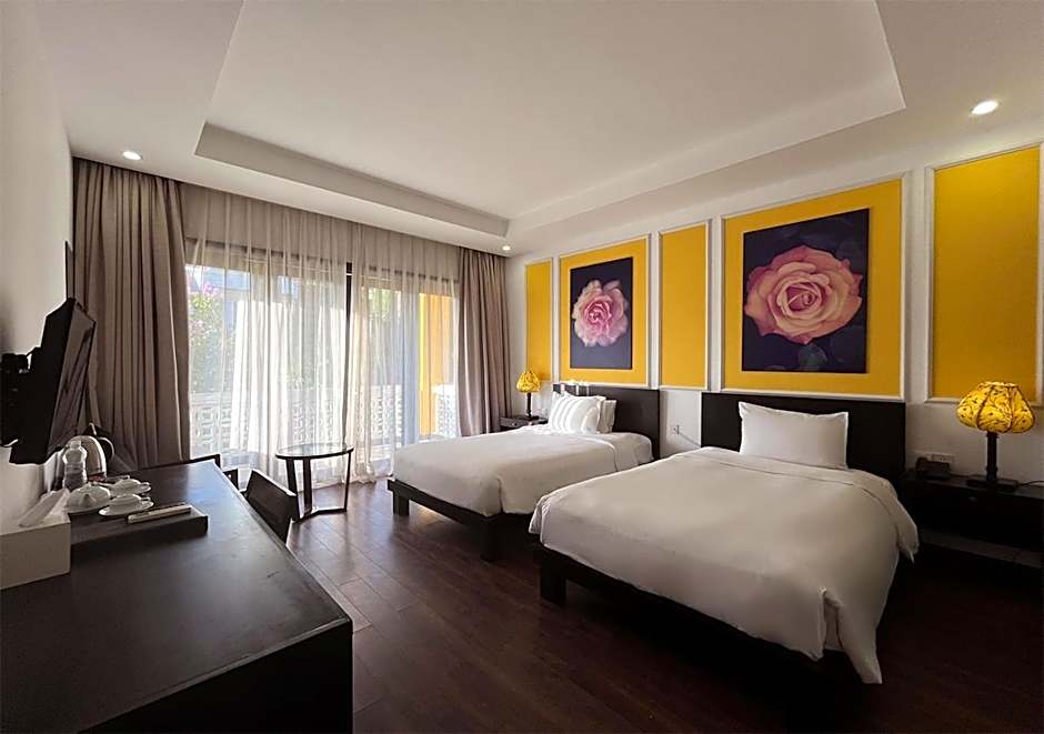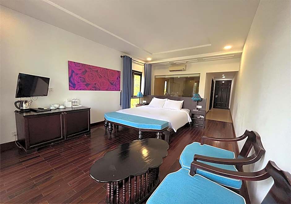 This double room has a balcony with pool and river views, mini-bar and cable TV.